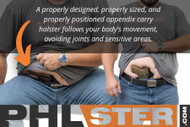 Learning correct reholstering technique makes it possible for most people, including larger folks, to reholster safely without muzzling any part of the body. But if you have limited mobility, or if your specific anatomy makes reholstering unsafe, then appendix carry may not be possible for you at this time. If you’re not sure, the best thing to do is consult with a qualified instructor who can help you assess your abilities and teach you safe reholstering techniques that work with your anatomy.