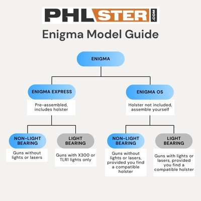 The Light Bearing Enigma comes to you completely disassembled WITHOUT a holster. It is up to the customer to find a compatible LBE Holster, please see
