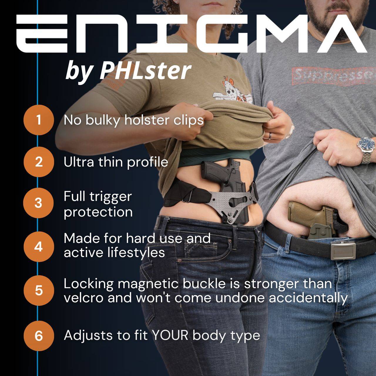 The Enigma Express is pre-assmbled and comes with our Skeleton holster (for specific gun models only – see fit list).